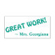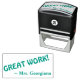 This encouraging rubber stamp design features the inspiring message "GREAT WORK!" and a custom educator's name. It could be used by a teacher, educator, or tutor when marking assignments, to acknowledge that a student has done well.