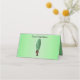 This folded standing place card for your parties, events, and weddings is a fading mix of medium green to lighter green in centre with a fun man with a big green pickle for a head with a surprised looking face wearing a brown suit. Customise the name and table number area and text on the back with the templates.