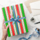 This Christmas and holidays inspired design features a red, white, and green coloured stripes pattern. It might be fun to use wrapping paper like this when wrapping gifts being given in celebration of a birthday, a wedding, an anniversary, or some other event.