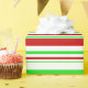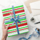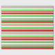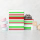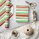 This Christmas inspired design features a striped pattern having colours like red, white, and green. Wrapping paper like this might be fun to use when preparing presents or gifts being given to celebrate a birthday, a wedding, an anniversary, or some other event.