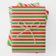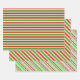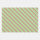 These festive, fun wrapping paper sheets designs feature Christmas inspired patterns of stripes having colours like green, white, and red. Festive wrapping paper sheets like these might be fun to use when wrapping presents or gifts being given to celebrate Christmas.