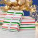 This wrapping paper design features a Christmas themed striped pattern having colours like green, white, and red. It might be fun to use wrapping paper like this when wrapping gifts being given to celebrate a birthday, a wedding, an anniversary, or some other event.