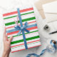 Fun Green, White, Red Striped/Lined Pattern Wrapping Paper