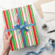 Fun Green, White, Red Stripes/Lines Pattern Wrapping Paper