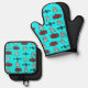 Fun Halloween Print on Blue Oven Mitt & Pot Holder Set