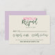 A simple and elegant calligraphy colourful retro wedding rsvp card. That has a vintage modern unique cream background with pink and green script and on the front and purple background on the back. Minimalist and chic with handwritten lettering . It is all editable by clicking on the personalise button.