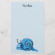This custom stationery is a light pale blue colour with a cute happy blue cartoon snail with a patterned shell at the bottom. Customise your name with the template.