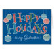 A fun, text-based Happy Holidays card for a Godmother, with Ornaments and Lettering, filled with red, blue and green chevrons and polka dots, outline in white on a bright blue background. There is also a custom front card with this design in case you can't find a card for the specific recipient you're looking for.