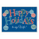 A fun, text-based Happy Holidays card for a Wife, with Ornaments and Lettering, filled with red, blue and green chevrons and polka dots, outline in white on a bright blue background. There is also a custom front card with this design in case you can't find a card for the specific recipient you're looking for.