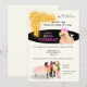 Fun Happy Hour invitation designed especially for women who need some quality down time together. We have these for each day of the week - so look for them in our store. Features neon coloured designs with a crown on the top left and your date to the right. You can easily change the headline text that currently reads: "It's MY day. Gonna do things MY way." if you choose. In the centre is the brightly coloured neon sign for the day of the week (Tuesday for this one), next to a woman in sunglasses wearing a neon pink crown and holding a martini glass. Below is text placeholder for your particulars. At the bottom is a pale pink sofa with four women standing around.