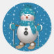 Fun Happy Skiing Snowman Classic Round Sticker