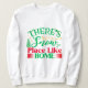 A festive sweatshirt design featuring the playful phrase about home and snow, surrounded by Christmas trees and cheerful decorations, perfect for holiday gatherings and celebrations.