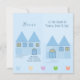 The design features artwork of homes in blue and yellow from both the front and back side of the houses and elegant colourful tulip flowers - along with customisable typography fields for new home moving announcement and housewarming party details and invite. The title for this card is "Home is the heart of Peace, Love & Joy!"