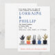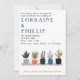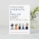 Invite loved ones to your special day with this contemporary wedding invitation featuring a playful row of hand-drawn style potted plants in black, gold, coral, and blue along the bottom border. The upper section presents your announcement in a stylish blend of oversized serif and classic type, creating a crisp, modern look. The venue, date, and time are displayed with clean spacing, while the finishing message in coral highlights an evening of dinner, drinks, and dancing. A nature-inspired, minimalist design that brings a fresh, joyful vibe to weddings at gardens, outdoor spaces, or botanical settings.