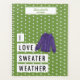 This design features a fun green background with white polka dots. The "I LOVE SWEATER WEATHER" typography and purple sweater make up the complete design. You personalise the text for a special gift or click customise to select a font style, size, and colour you prefer.
