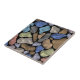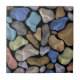 Fun illustration stones in mult-colour, blue, brown, green on black background.