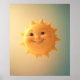 This vibrant sunburst design features a glowing yellow sun at its centre, surrounded by dynamic radiant rays bursting in all directions. The bright gradient background transitions seamlessly from golden yellow to warm orange, creating a warm colour palette that exudes vitality and summer vibes. Bold vector shapes and crisp outlines define each sunray pattern, while subtle texture accents and luminous highlights add depth and dimension to the happy sun illustration. The energetic design highlights a solar motif that captures attention and amplifies visual impact in both digital and print formats.
