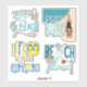 A set of four fun beach quotes In quirky typography and vacation motifs. Beach Babe; Take Me To The Beach; Beach Please; and Life is Fabulous In Flip Flops. They are individually cut within the sheet so you can put a different one on your various devices laptop, phone, journal etc and suitcase, and have a taste of summer everywhere! Select the Glossy Transparent option if you prefer the white background not to show.