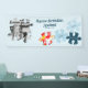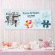 The Fun Jigsaw Puzzle Custom Image Text Happy Birthday Banner is primarily light blue, a gender-neutral color. Customize it with the birthday child's image, the occasion, and the date. Additionally, an image placeholder allows you to showcase the puzzle's theme, and three other pieces provide space for short motivational texts. All elements are customizable by color.