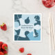 Fun Jigsaw Puzzle Kids Happy Birthday Name Blue Napkins feature a partial close-up of jigsaw puzzle pieces in shades of blue. In the center is a placeholder for the sample text "Jayden turns 5. Happy Birthday!", as well as space for the event and date. Any unwanted text placeholder leave empty. All elements are color customizable.