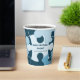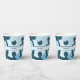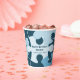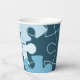 Fun Jigsaw Puzzle Kids Happy Birthday Name Blue Paper Cups, in 8 oz, feature a partial close-up of blue jigsaw puzzle pieces. In the center is a placeholder for the sample text "Happy Birthday, Jayden! and the party date!". Any unwanted text placeholder leave empty. All elements are color customizable.
