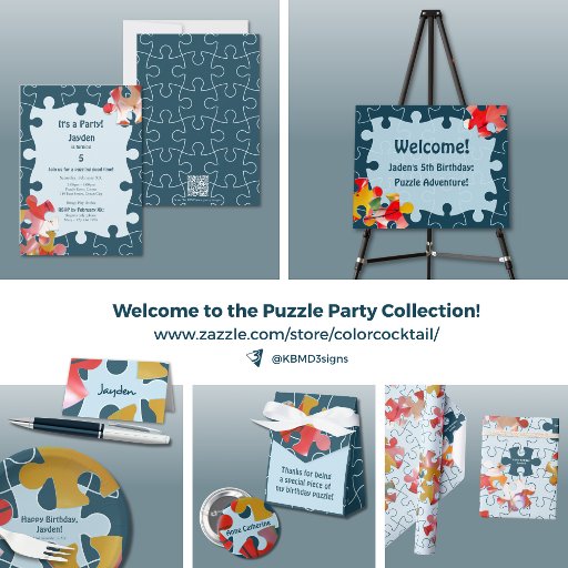 #5thBirthdayInvite #PuzzleTheme #PuzzlePartyInvitation #ZazzleMade #KBMD3signs