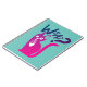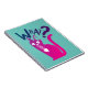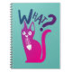 Funny notebook with a cat asking WHAT when she was caught for swallowing whole a fish. The cat has a lovely gradient, from purple to magenta on a turquoise background.