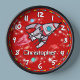 Fun kids boys rocket space name red wall clock