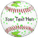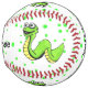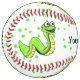 This custom softball is white with vibrant green polka dots and fun cartoon type smiling bright green snakes with yellow bellies. Customise the text on the front and back with the templates.