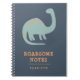 A super cute notebook for a kid featuring an illustration of a dinosaur in muted blue and orange, on a navy blue background. The editable title reads "Roarsome Notes". Personalise with child's name. This makes a great back-to-school gift.