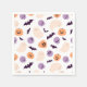 This design features a playful and colourful Halloween pattern with a minimalist design. The pattern includes simple, rounded shapes of jack-o'-lanterns, ghosts, skulls, and bats, all scattered across a white background. The colour palette is soft yet vibrant, with pumpkins in shades of orange, ghosts in pale peach, skulls in lavender, and bats in deep purple. Each element has a cute and friendly expression, making the pattern fun and lighthearted, perfect for Halloween decorations or kids' party themes. The overall design is cheerful and festive, capturing the whimsical side of Halloween.