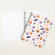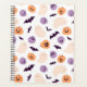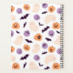 This design features a playful and colourful Halloween pattern with a minimalist design. The pattern includes simple, rounded shapes of jack-o'-lanterns, ghosts, skulls, and bats, all scattered across a white background. The colour palette is soft yet vibrant, with pumpkins in shades of orange, ghosts in pale peach, skulls in lavender, and bats in deep purple. Each element has a cute and friendly expression, making the pattern fun and lighthearted, perfect for Halloween decorations or kids' party themes. The overall design is cheerful and festive, capturing the whimsical side of Halloween.