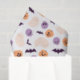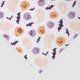 This design features a playful and colourful Halloween pattern with a minimalist design. The pattern includes simple, rounded shapes of jack-o'-lanterns, ghosts, skulls, and bats, all scattered across a white background. The colour palette is soft yet vibrant, with pumpkins in shades of orange, ghosts in pale peach, skulls in lavender, and bats in deep purple. Each element has a cute and friendly expression, making the pattern fun and lighthearted, perfect for Halloween decorations or kids' party themes. The overall design is cheerful and festive, capturing the whimsical side of Halloween.