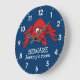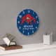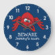 Graphic art wall clock featuring cheeky spider and fly. Great to add some humour in a kids bedroom. With this fun beware named boys wall clock in blue and red.