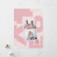 A large pink love written all over a light pink background. In the foreground placed 2 photos.
