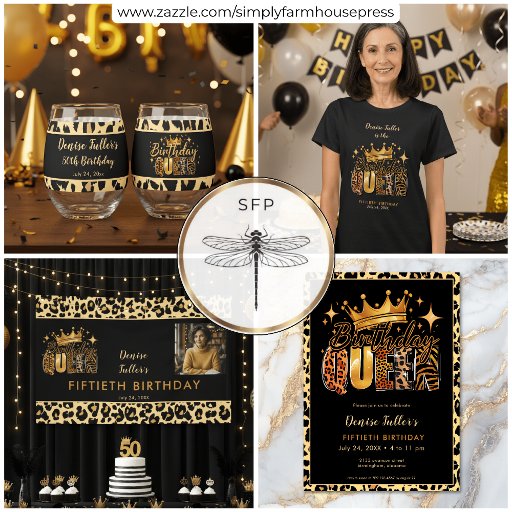 Modern, chic and fun, these birthday paper plates celebrate the wild queen in every woman! With a blend of leopard, tiger, and other wild prints, this black, orange and gold themed design is a fun way to celebrate a milestone birthday. Created by Simply Farmhouse Press.