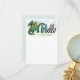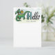 A long necked dinosaur, reminiscent of a brontosaurus or diplodocus, stands in front of a palm tree and below a smiling sun next to a mixed style hand-drawn message of "hello" on this pint-sized flat note card stationery that is perfect for a Dino loving kids. Don't forget to personalise the name text and make this personal stationery the kind your kid will enjoy using.