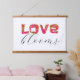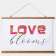 fun love blooms word art hot pink and white hanging tapestry