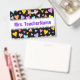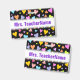 This cheerful, fun and loving badge design features a pattern of heart shapes of various sizes and colored a variety of colors. It also features a customizable name in purple colored text within a white colored area. A badge like this could perhaps be worn by a teacher, educator, tutor or professor during the early weeks of a school year or a course. It might help the students learn and remember their teacher’s name. [~Z0000175]