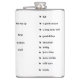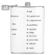 a fun novelty flask with a joke measuring line, with funny measurements such as a good amount, good dollop, drop and a half, even just a smidge, with full and empty marks, it has large and small mouth full marks to.