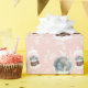 Cute fun merry Christmas illustration,add one photo and turn it into a cute winter snowglobe with snowflakes, mountain, snowman, pine branches, add your name and season's greetings! On editable pastel pink