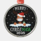 Celebrate and commemorate this 2020 covid Christmas with this fun Christmas tree ornament with a lovely cartoon reindeer with a red hat, face mask, and hand sanitizer, decorated with snowflakes. The word pun caption reads Merry Christmask 2020 in white and green all caps lettering.