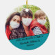 Celebrate and commemorate this 2020 covid Christmas with this fun Christmas tree ornament with a lovely cartoon reindeer with a red hat, face mask, and hand sanitizer, decorated with snowflakes. The word pun caption reads Merry Christmask 2020 in black and green all caps lettering. The back is customisable with your own family picture and your names or custom text.