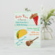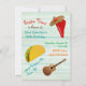 Fun birthday party invitation done in a colourful Mexican theme. Graphics of a green washed wood look with a chilli, taco, and guitar clip art decorates this festive invitation. Multi-coloured text is ready to personalise for your event.