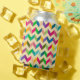This foam drink cooler has a fun retro-inspired rainbow-coloured mini chevron pattern. The colourful pattern wraps fully around the can or bottle cooler and is inspired by the funky patterned styles of the 1970s.