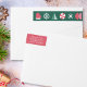 A fun, modern Christmas wrap around address label featuring geometric Christmas icons like mittens, snowflake, star, geometric tree, peppermint in red and green, festive colours. This label is part of my Modern Geometric Shapes Christmas stationery collection.