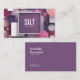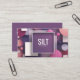 Showcase your brand's creative energy with this fun and modern geometric business card. The design features a playful, layered collage of circles and squares in chic shades of pink, magenta, and plum purple. A unique and eye-catching mix of textures, including sparkling glitter, grainy sand, and smooth solids, gives the card a dynamic and tactile effect. Set against a dark, speckled celestial background, your professional details are highlighted in a bold, solid purple central frame with a clean white border, creating a confident and stylish focal point.