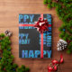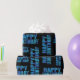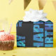 Fill your gifts with colour with this fun and modern wrapping paper. The “Happy Birthday” pattern is designed with letters in marmorized blue tones on a black background.