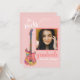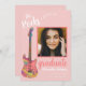Celebrate your daughter’s incredible college graduation with a fun pink guitar grad photo announcement card, featuring a bold colourful psychedelic pink guitar and stylish pink and white script. This eye-catching design is bursting with energetic hues of pink and accented with elegant pink and white calligraphy and musical notes perfectly capturing the excitement of the occasion. Ideal for college or university graduates, but also works for high school graduations, this card celebrates her achievement in a modern, boho-inspired style.