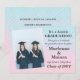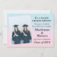 It's a double graduation. Fun and modern twins photo high school graduation announcement invitation with a gold, blue and pink ombre pattern background. Personalise the text to proudly announce the graduation of your daughters and their class year and invite your guests to an open house or party.